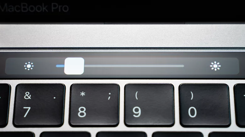 Nếu bạn đang sử dụng MacBook có Touch Bar, hãy nhấn vào biểu tượng mặt trời và điều chỉnh độ sáng của màn hình bằng thanh trượt xuất hiện. Bạn cũng có thể mở rộng dải điều khiển và tìm nút ở đó.