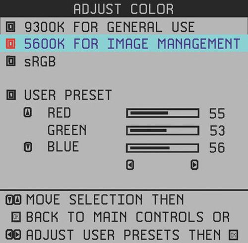 Đa số màn hình máy tính hiện nay đều được thiết lập nhiệt độ màu sắc mặc định là 9300K, vì thế nó sẽ dễ gây ra hiện tượng bị ám xanh. Bạn nên điều chỉnh màu sắc rực rỡ hơn một chút bằng việc giảm nhiệt độ màu xuống mức 3500K ( tương đương với điều kiện ánh sáng ngoài môi trường). Để điều chỉnh nhiệt độ màu, bạn có thể sử dụng các phím cứng có sẵn trên màn hình và tìm đến mục Color và chọn Image settings. Ngoài ra, bạn cũng nên lưu ý đến tên gọi của nhiệt độ màu để hạn chế việc nhầm lẫn bởi ngoài mức 6500K ở một số màn hình còn có thê gọi khác là sRGB hoặc D65.